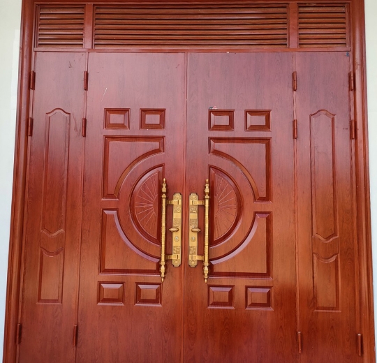 Mẫu cửa đi thép vân gỗ 4 cánh cao cấp sơn roman đồng Đắk Lắk