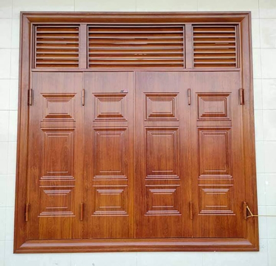 Cửa sổ 4 cánh thép vân gỗ nhập khẩu